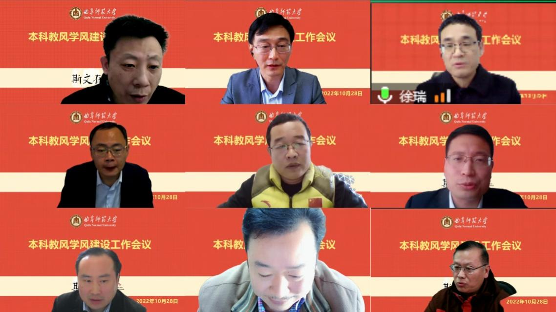 曲阜师大新闻中心讯(通讯员:郭智辉 摄影:刘萌) 10月28日上午,曲阜师大通过线上会议方式召开本科教风学风建设工作交流会。学校党委副书记李志红,党委副书记卢国强,党委常委、副校长胡凡刚、党委常委、宣传部部长孙祥广出席会议。