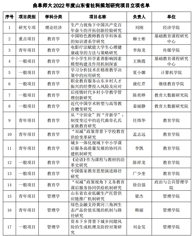 位居山东省属高校第二——曲阜师大获批41项2022年度山东省社科规划研究项目
