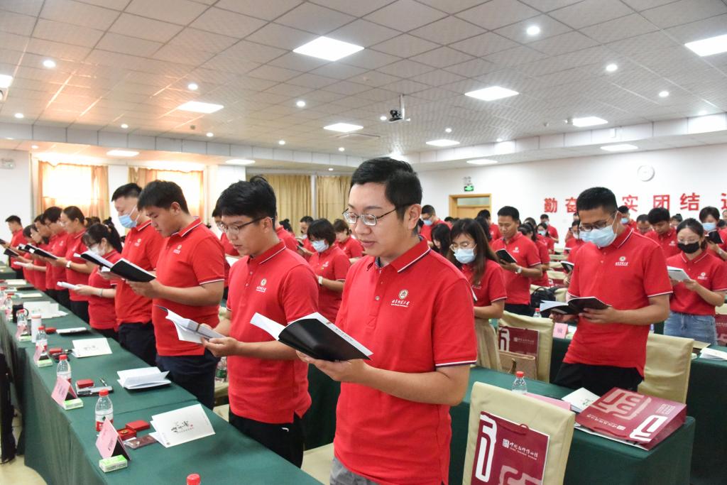 党委副书记李志红带领全体人员重温习近平总书记重要指示和学校校训,感悟殷殷嘱托,不忘为党育人、为国育才初心使命。