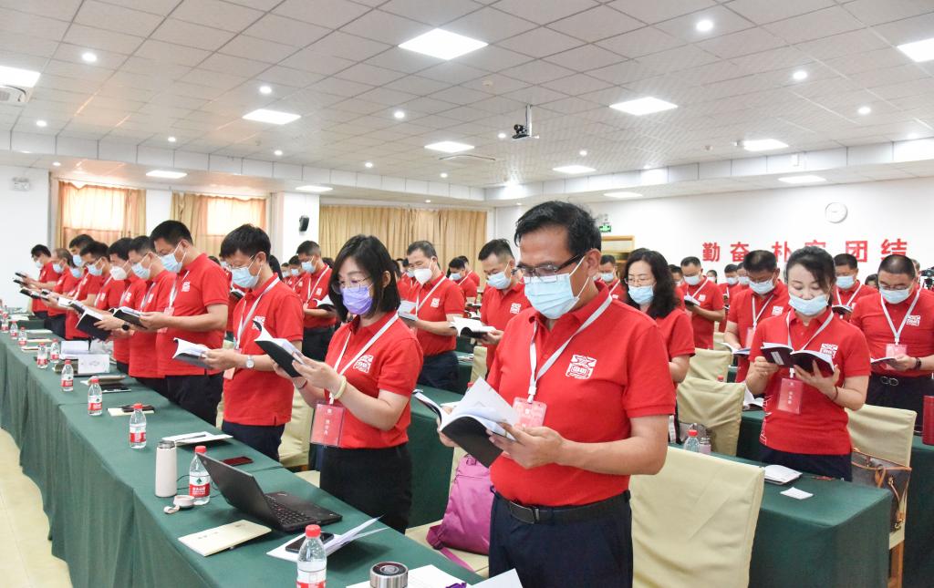 在全体学员的见证下,陈武代表教师工作司为研修班授旗,班长张洁郑重接过班旗。