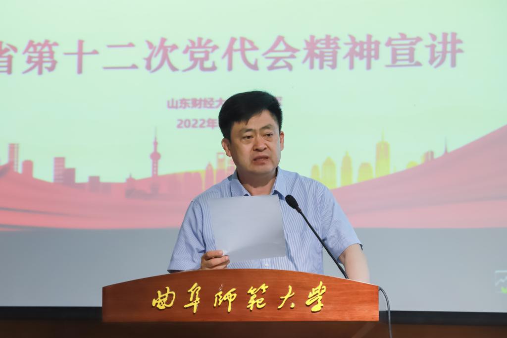 戚万学强调学习宣传贯彻省第十二次党代会精神是当前和今后一个时期的一项重大政治任务。各级各部门要以此次报告会为契机,按照省委统一部署和要求,切实把思想和行动统一到省党代会精神上来,进一步把对省党代会精神的学习贯彻引向深入、落细落实。要全面系统学,提高站位强化使命意识,从中汲取指引新征程的智慧与力量,对标对表、聚焦聚力,压实责任、狠抓落实;要分层分众学,要针对不同师生群体组织主题鲜明、形式多样的学习、教育活动,有的放矢提升学习实效;要联系实际学,以学促行推动事业发展,为实现“走在前、开新局”贡献曲师智慧、曲师力量。