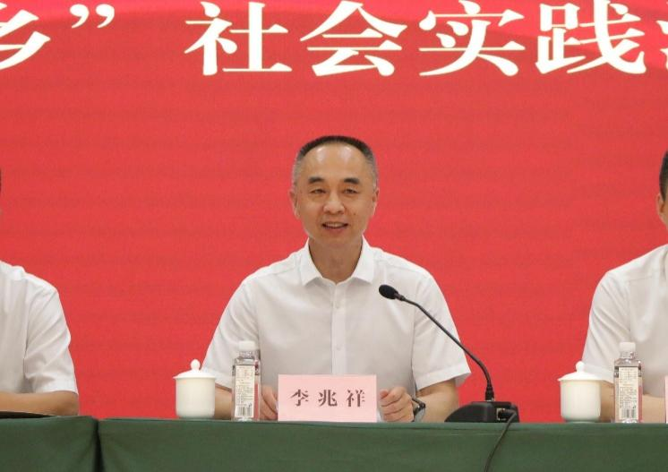 李兆祥代表学校向即将奔赴各地、投身于社会实践和志愿服务活动的全体师生表示诚挚的问候和美好的祝愿。李兆祥表示,大学生暑期“三下乡”社会实践活动是落实习近平总书记关于青年成长成才重要讲话精神的具体举措,是加强和改进高校思想政治教育的重要途径。经过多年的坚持和传承,暑期社会实践已经成为我校的特色活动、亮点工作和品牌项目,结合今年“青春献礼二十大,强国有我新征程”的主题,李兆祥向同学们提出三点希望:一是同学们要通过实践提高个人综合素质,在社会实践中获得新技能、新本领;二是要在实践中丰富自己的知识,增长才干,在与社会的接触中改善知识结构;三是通过实践磨练自己的品质、意志,把青春奋斗融入其中。