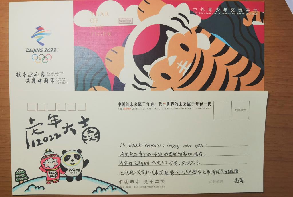 中外青少年交流基地办公室专门设计了“携手迎冬奥·共度中国年”主题明信片,中外联谊青年分别用中文和本国语言书写,表达对新春和冬奥的美好祝愿。“我们相互之间寄递了明信片,表达彼此的友谊,同时这些融入冬奥和春节元素的明信片,也让外国青年朋友更近距离地感受到了北京冬奥会和中国文化的魅力”参加此次活动的米兰网学生金瑞说到。