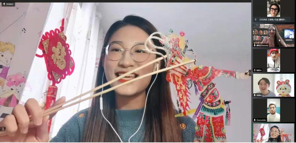 “这是中国民间的布老虎枕头,它会给你带来平安吉祥”“这是家乡的石榴,外面红红火火,籽粒饱满紧致,希望我们之间像石榴籽一样友谊长存”……手工布老虎枕头、柳编、皮影、剪纸、福建泉州提线木偶等纷纷亮相,中方青年一一展示家乡的特色美食和工艺品,并介绍其中蕴含的传统寓意,让外国青年从中感受丰富多彩的中国文化以及中国人民的热情友好。“柳编工艺品我非常喜欢,看见它很有特色和创意,也非常实用”来自俄罗斯的娜塔莎高兴地说。