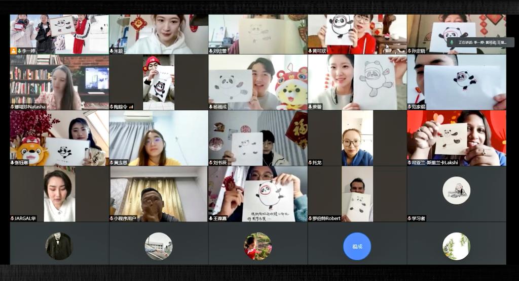 交流过程中,中外青少年交流基地的志愿者任姿璇带领大家一起画出了可爱的奥运会吉祥物冰墩墩,并作为礼物赠给了新西兰留学生Chanel。最后,大家用手势舞表演了奥运会主题曲《一起向未来》,在动感的旋律中结束了全场活动。