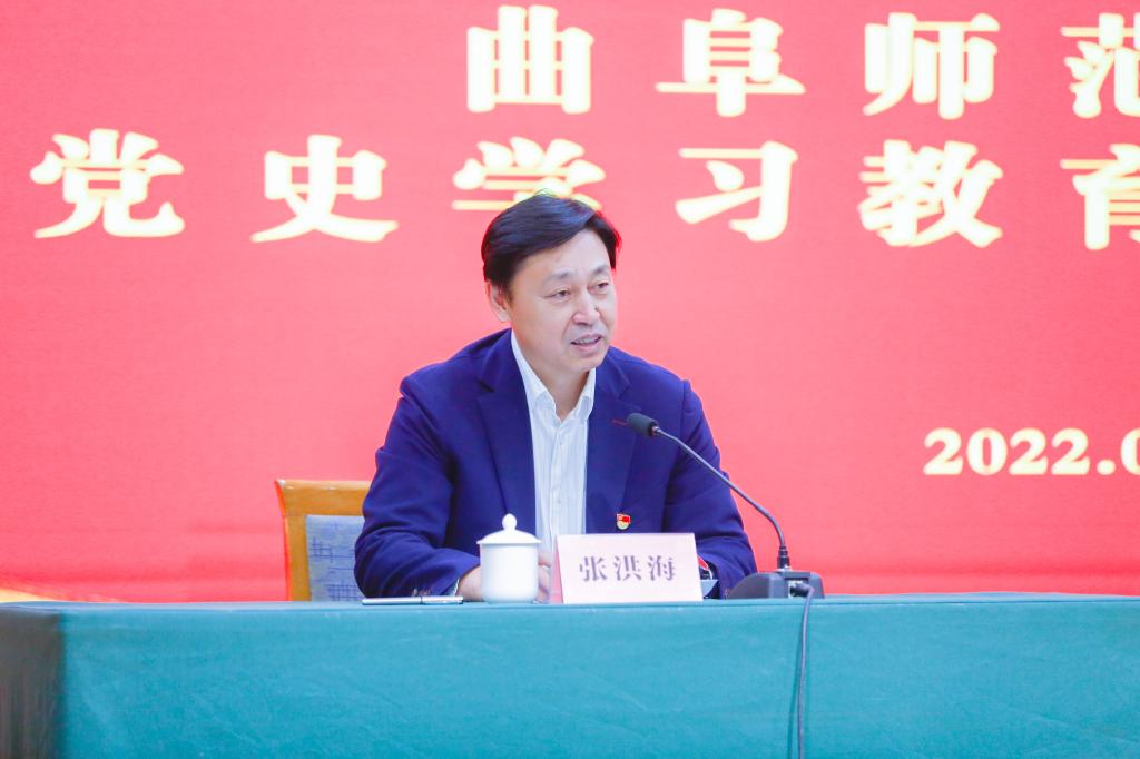 戚万学强调,党史学习教育是一项长期的任务,要融入日常、抓在经常,在常学常新上下功夫,在常学常悟上见真章,在常学常做上求实效。我们要始终牢记为党育人、为国育才的初心使命,勇担“为国弘文”的时代重任,以强烈的历史主动精神奋进新征程、建功新时代,为建设孔子家乡一流大学接续奋斗,以优异的成绩迎接党的二十大胜利召开。