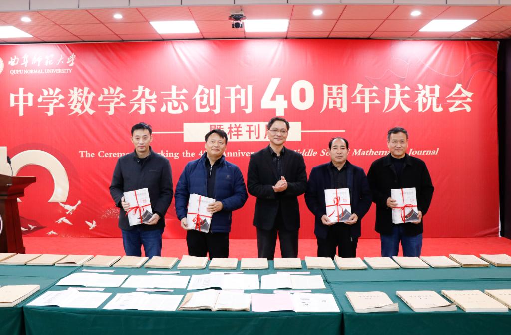 曲阜师大新闻中心讯 11月25日下午,《中学数学杂志》举办创刊40周年庆祝会暨样刊展。学校党委常委、副校长夏云杰,党委常委、宣传部部长张隆海,《中学数学杂志》历任主编马克杰、周家云、李正银、李吉宝,曲阜市第一中学、曲阜市杏坛中学负责人,以及我校相关单位负责人、师生代表参加了会议。活动由张隆海主持。