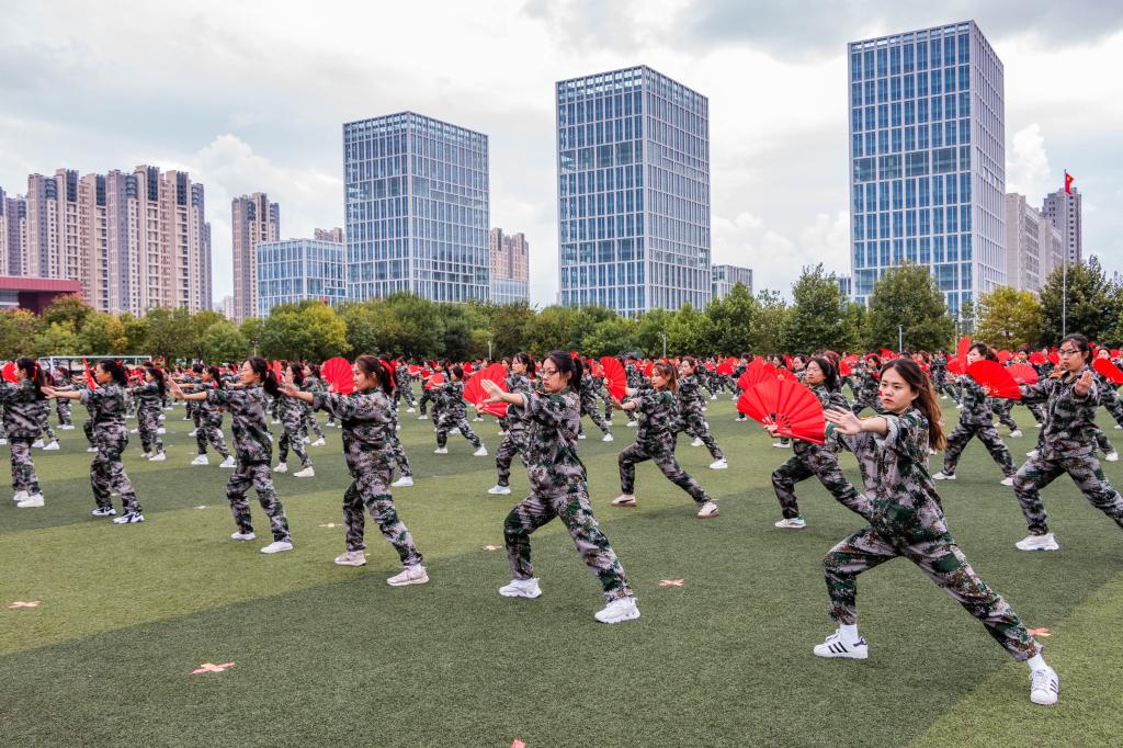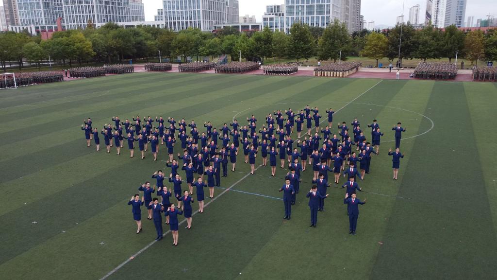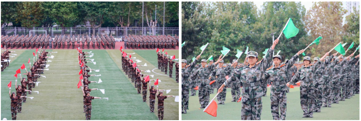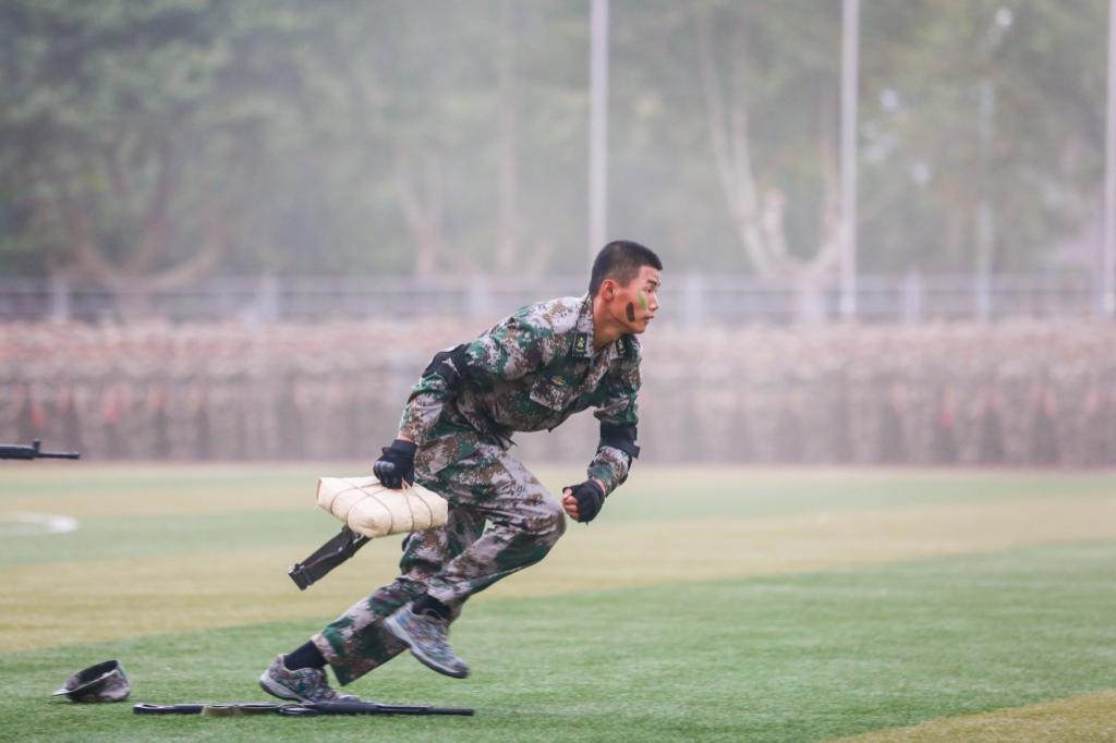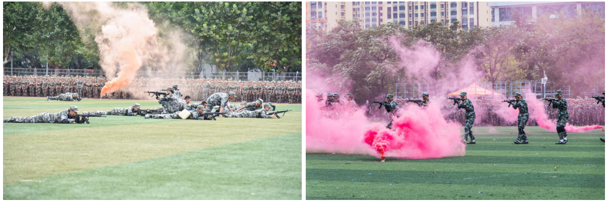 大会在全体师生齐唱国歌中拉开帷幕。在随后的军训汇报表演中,曲园学子们精神抖擞、意气风发,队列方阵动作整齐、军姿飒爽,擒敌拳方阵招式凌厉、气势强劲,内务方阵井然有序、一丝不苟,棍术方阵铿锵有力、势如破竹,旗语方阵干净利落、整齐划一,定向越野方阵步履矫健、配合默契,心理健康操方阵在优美舞姿中绽放青春风采、表达美好祝福,军训教官组成的战地救护和格斗方阵尽显无畏精神与英雄气概,获得阵阵掌声和欢呼。汇演过程中,参训同学还通过队列阵型摆出了“1921—2021”“百年初心,牢记使命”“请党放心,强国有我”“我爱曲园”等字样,表达出热烈的爱党爱国、爱校荣校之情。