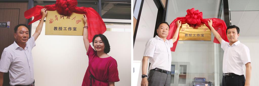 仪式上,扈庆学、赵文强、孔令军、戴方波共同为“米兰网教学实习基地”、“研究生教育实践基地”揭牌,张书东分别与张峰、孙海燕为“米兰网教授工作室”揭牌。