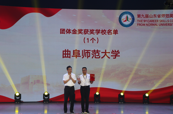 山东省师范类高校学生从业技能大赛,是我省着力打造的旨在提升师范生培养质量和从业实践能力的高端平台,赢得了教育部以及中央媒体的高度关注。本次大赛颁奖典礼上,教育部高校学生司副司长吴爱华专门为曲阜师大颁发团体金奖。曲阜师大副校长胡钦晓出席颁奖典礼并事先到比赛现场为学校参赛师生提供指导、送上鼓励。