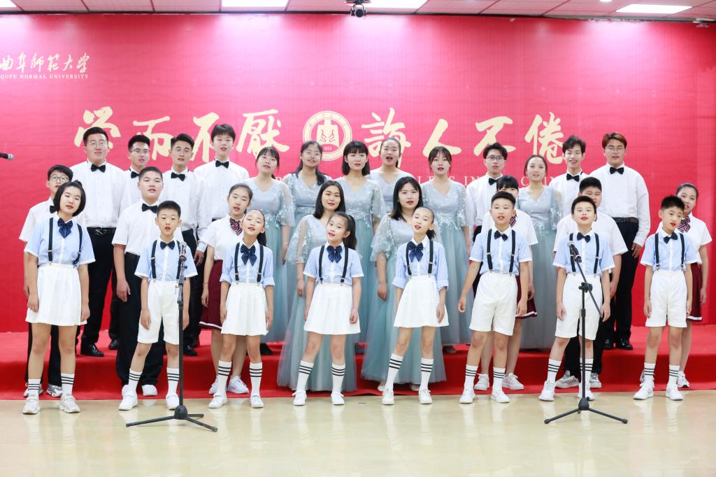 活动最后,曲阜师大学生及曲阜市田家炳中学、田家炳小学的学生共同唱响《夜空中最亮的星》,歌声悠扬、情感真炽,饱含着对田家炳先生的深情缅怀和无限敬意。