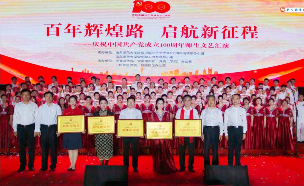 本次汇演中,经过评委会现场评定,音乐学院、日照校区机关党委、传媒学院、计算机学院、工学院、书法学院、历史文化学院、网络空间安全学院、文学院、物理工程学院、统计学院,荣获最佳创意奖;教育学院、化学与化工学院、数学科学学院、体育科学学院、机关党委、管理学院、附属实验学校、地理与旅游学院、法学院,荣获最佳演唱奖;离退休教职工党委、直属机构党委与继续教育学院党总支联队、外国语学院、后勤党委、附属中小学党委、生命科学学院、美术学院、翻译学院、经济学院、马克思主义学部,荣获最佳风采奖。