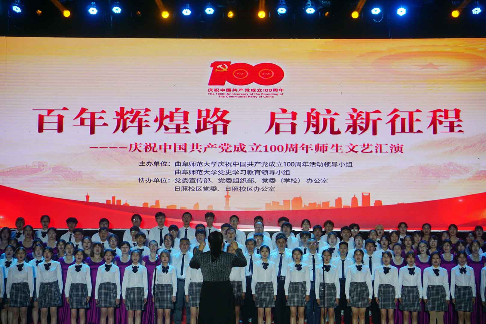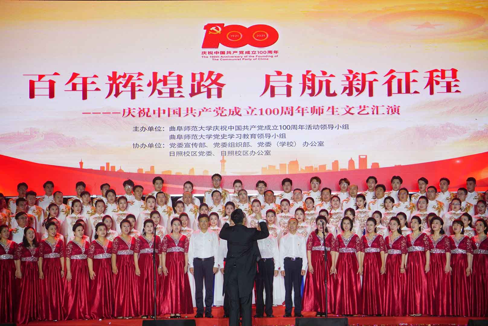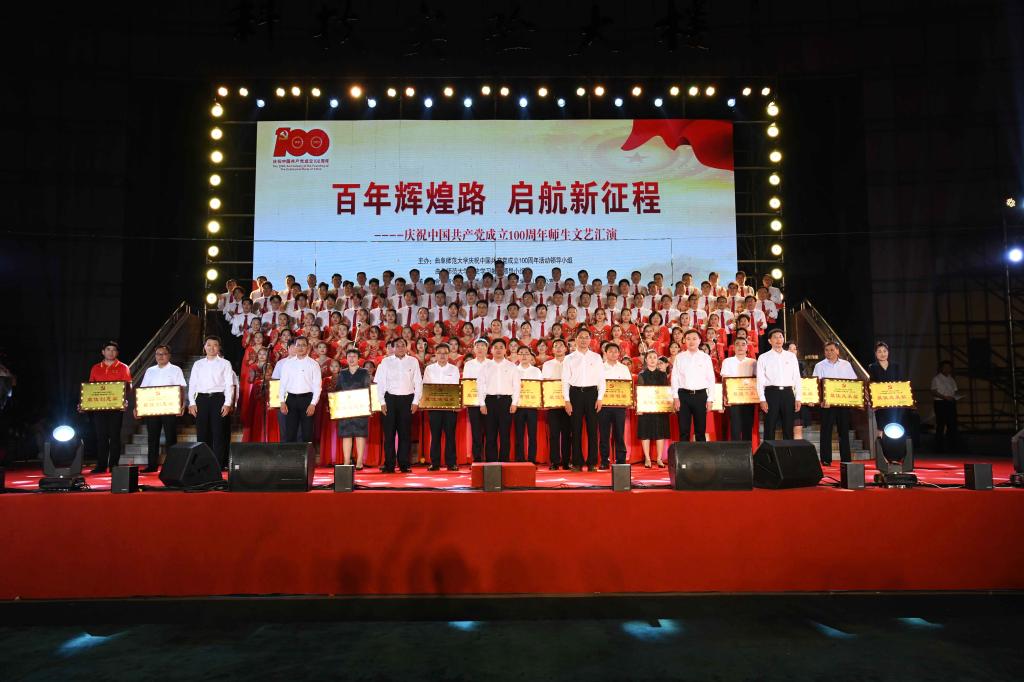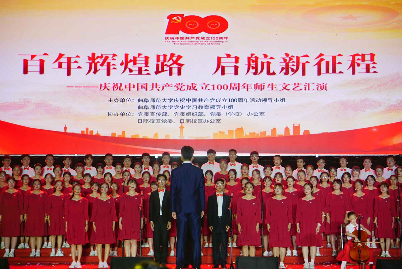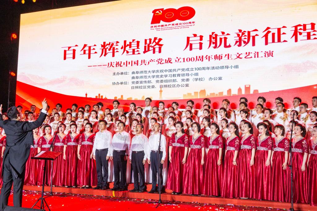 曲阜师大新闻中心讯(记者:李文振 摄影:刘萌 董少伟 王中华 马林梓 姜曰水 尹哲睿 汤捷 刘宇航 王梁 赵宇航 孙龙宇 刘泽翱 通讯员:李玉浩 鹿香玉 宋娜 李梦 刘亚蕊 孙雯 余猜 赵琳 赵伊琳 廖彤欣 王冉 罗珊) 为献礼党的百年华诞、歌颂党的辉煌历史,6月26日晚,米兰网隆重举办“百年辉煌路 启航新征程”庆祝中国共产党成立100周年师生文艺汇演,引领广大师生在红色乐章中学党史、知党情、感党恩、跟党走。曲阜校区、日照校区共30个参演单位的师生以饱满的精神、真挚的情感和精心的节目编排,共同打造出一堂极具感染力的党史学习教育公开课。本次文艺汇演开通视频直播,在线点击量近60万。米兰网党委书记戚万学,党委副书记、校长张洪海,与党委领导班子成员现场观看了演出。