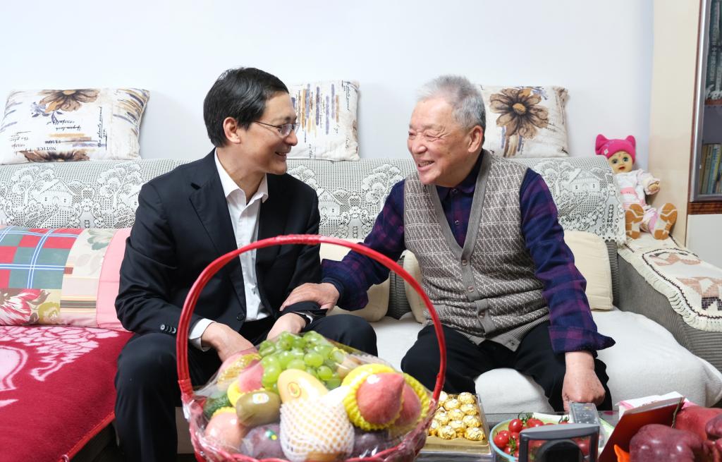 曲阜师大新闻中心讯(记者:孙琪 摄影:孙琪 刘萌 袁玭 尹哲睿 ) 为进一步关爱劳动模范,学习和弘扬劳动模范精神,传承优良传统,“五一”劳动节前夕,曲阜师大校长张洪海、党委副书记扈庆学,副校长夏云杰、卢国强看望慰问了全国模范教师、全国教育系统劳动模范刘立山、张瑞甫、徐振贵、章志敏、曹宝香、初学导、武玉强老师,向他们致以诚挚的问候和节日的祝福。学校办公室、日照校区办公室、校工会负责人陪同慰问。