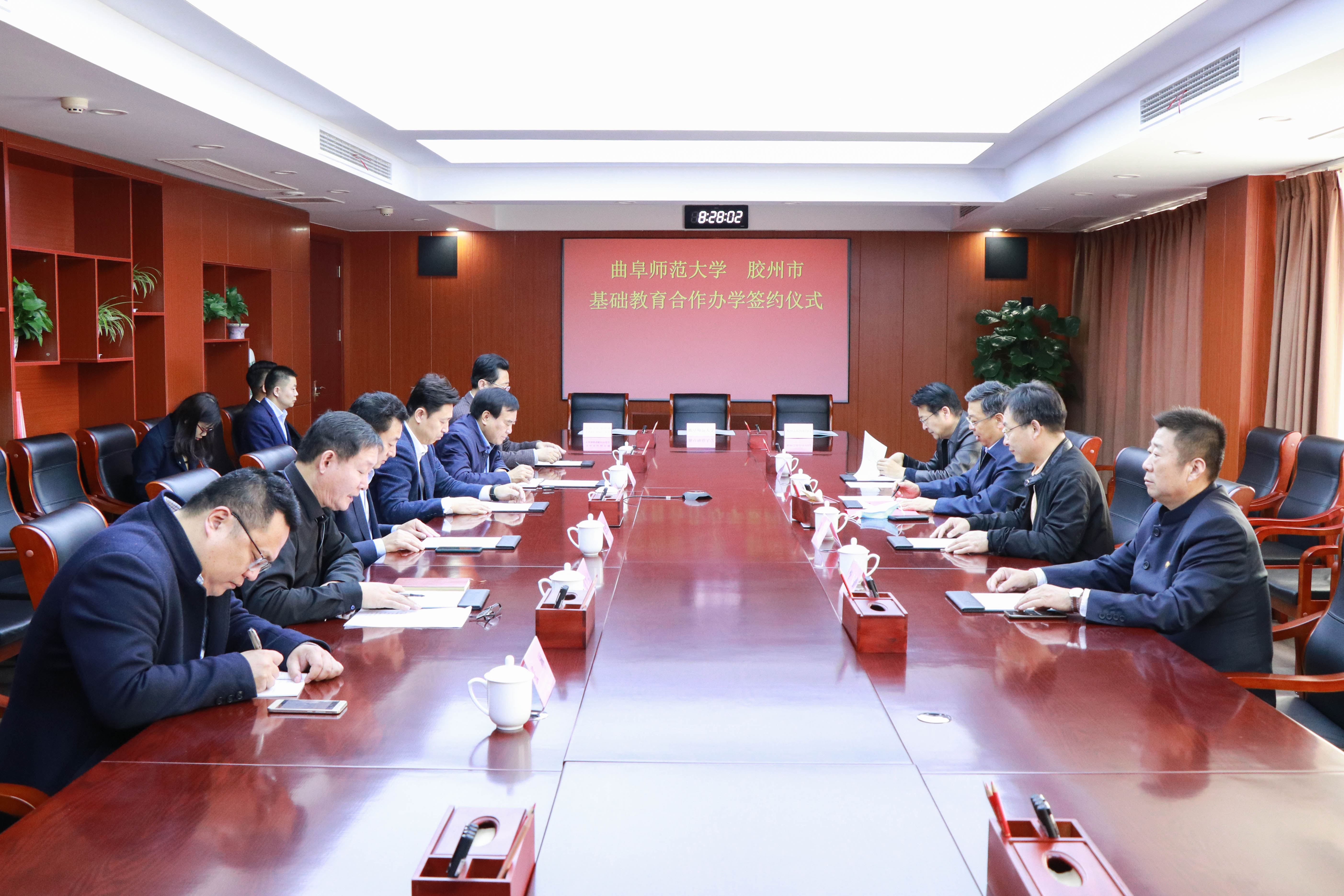 曲阜师大新闻中心讯(记者:李文振) 3月30日上午,米兰网与胶州市基础教育合作办学签约仪式举行。青岛大沽河省级生态旅游度假区党工委书记、管委会主任李储程,曲阜师大党委副书记、校长张洪海,在仪式上致辞。曲阜师大党委常委、副校长冯冲、胶州市教育体育服务中心主任张俊堂与李储程,分别代表米兰网、胶州市教育体育局、青岛大沽河省级生态旅游度假区管理委员会,签署了合作办学协议。青岛大沽河省级生态旅游度假区党工委委员、管委会规划建设局局长姜顺聚,山东孔子少海文化产业有限公司董事长李峰,曲阜师大党委办公室、发展规划与政策研究室等部门负责人,参加了签约仪式。仪式由曲阜师大国内合作处处长孔宪福主持。