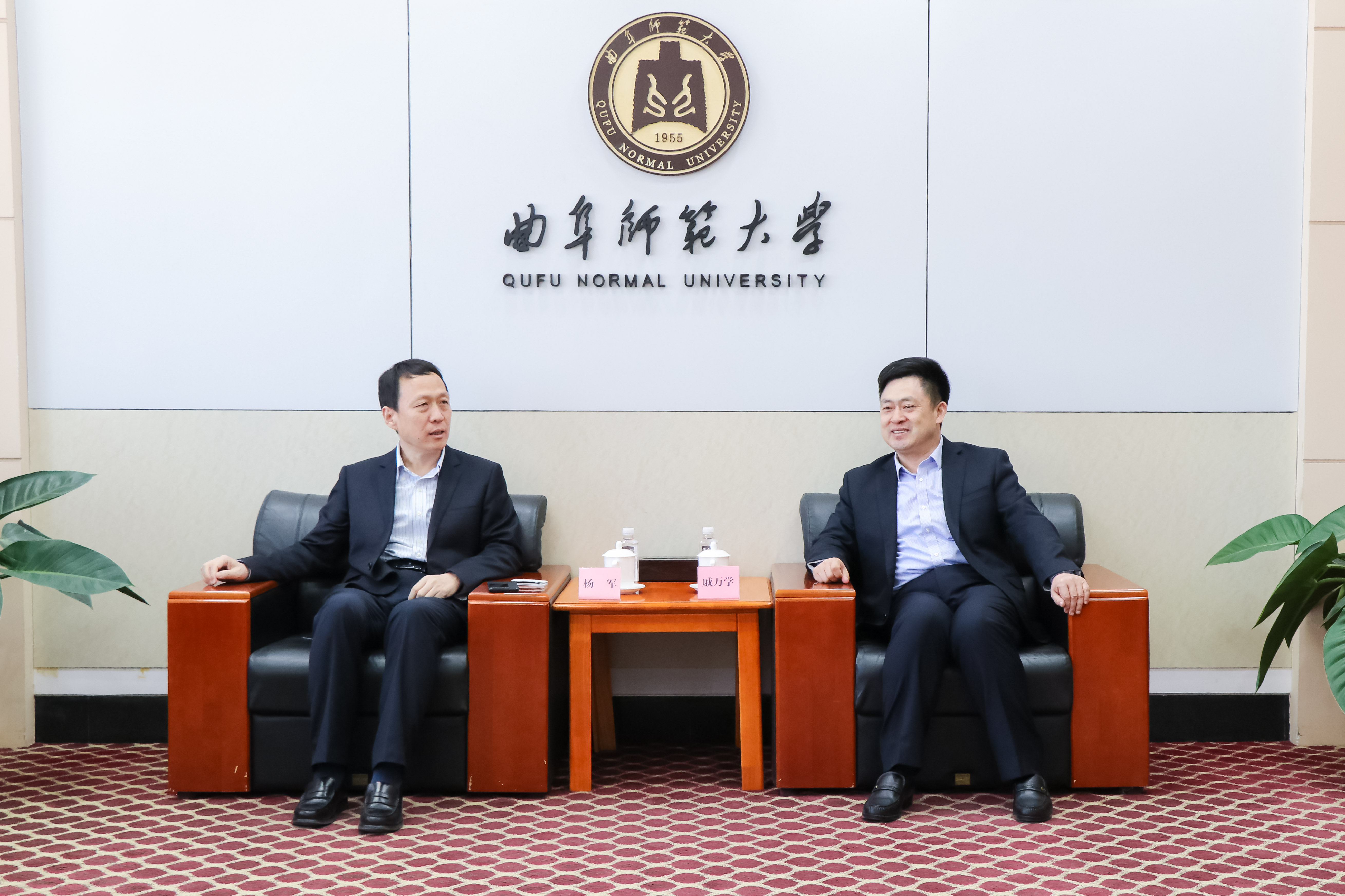 戚万学对杨军一行来访表示热烈欢迎,对建设银行长期以来给予学校的支持表示感谢,介绍了学科建设、科研工作以及曲阜校区扩建等近年来取得的办学成就。戚万学说,建设银行以高质量的金融服务助力教育事业发展,多年来与曲阜师大构建了良好合作基础,希望双方不断深化合作关系、再拓共赢格局。