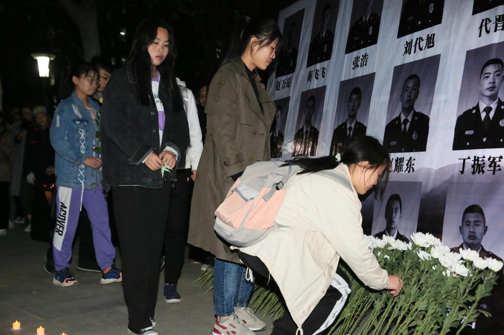为纪念在凉山火灾中牺牲的英雄,4月3日晚,数学科学学院团委在大学生活动中心广场举行祭奠四川木里县森林大火牺牲英雄仪式,千余名大学生参加集会,向在山火中壮烈牺牲的英雄们寄予哀思。