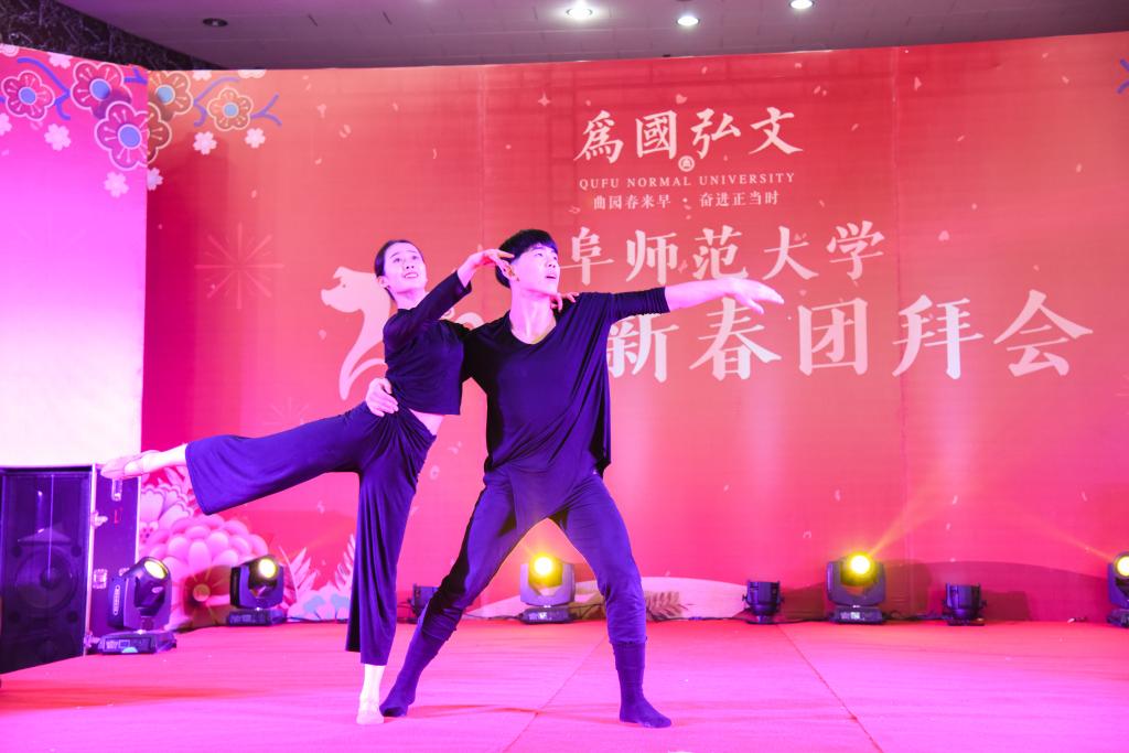 开场群舞《春之灵》用曼妙的舞姿,别具民族韵味的表演,传递着新春的活力和勃勃生机;器乐合奏《探戈春天》,中西合璧,动感的旋律和欢快的节奏饱含着对生命的热爱和新春的祝福;歌曲联唱《多情的土地》《乌苏里船歌》《我是中国人》,或深情无限,或婉转轻快,或铿锵有力,唱出了对伟大祖国的无限热爱之情;双人舞《九儿》在经典的老歌伴奏中,让人不禁缅怀往昔峥嵘岁月,珍惜当下好时光;戏曲联唱《花木兰》《梨花颂》《说唱脸谱》,为大家呈现了一场传统文化盛宴,彰显了国粹的文化魅力;唢呐独奏《正月十五闹雪灯》热烈明快,传递着节日的喜庆气氛;深情的朗诵《春天的征程》把整场表演推向高潮,回忆了曲园一年喜悦,展望曲园美好未来,发出了曲园时代强音。团拜会表演在《美丽家园》欢快动听的歌声中落下帷幕。