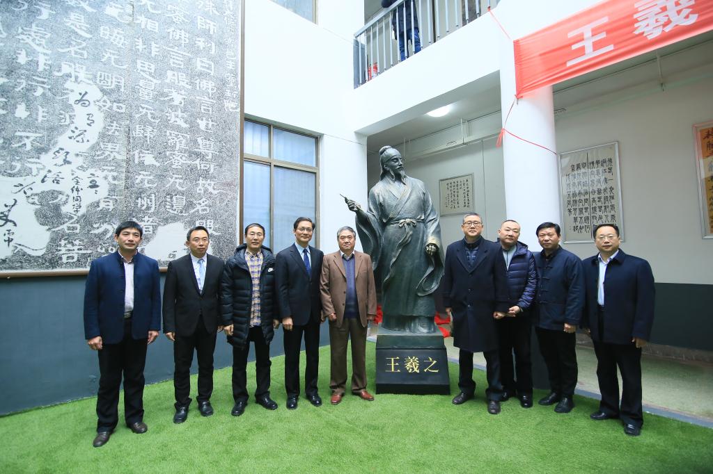 仪式上,夏云杰和孟鸿声共同为“王羲之”铜像揭幕。