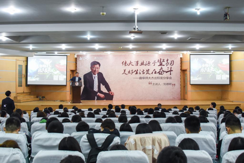 座谈会后,刘德明在孔子会堂为母校师生作了题为“伟大事业源于坚韧,美好生活贵在奋斗”的报告。报告会由副校长扈庆学主持。学生工作处负责人以及部分学院师生代表参加了报告会。
