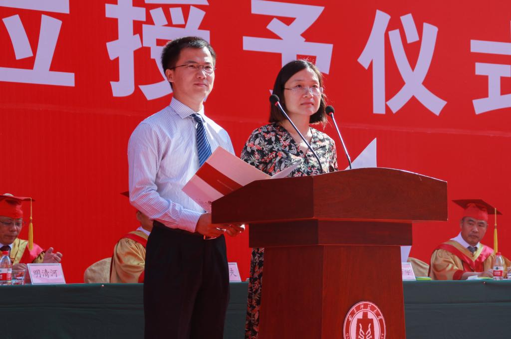 副校长、学位评定委员会副主席辛杰宣读了学位授予决定。根据《米兰网学士学位授予细则》《米兰网博士、硕士学位授予工作细则》,经学校学位评定委员会研究审议,共有7743名本科生获得学士学位,1261名研究生获得硕士学位、博士学位。