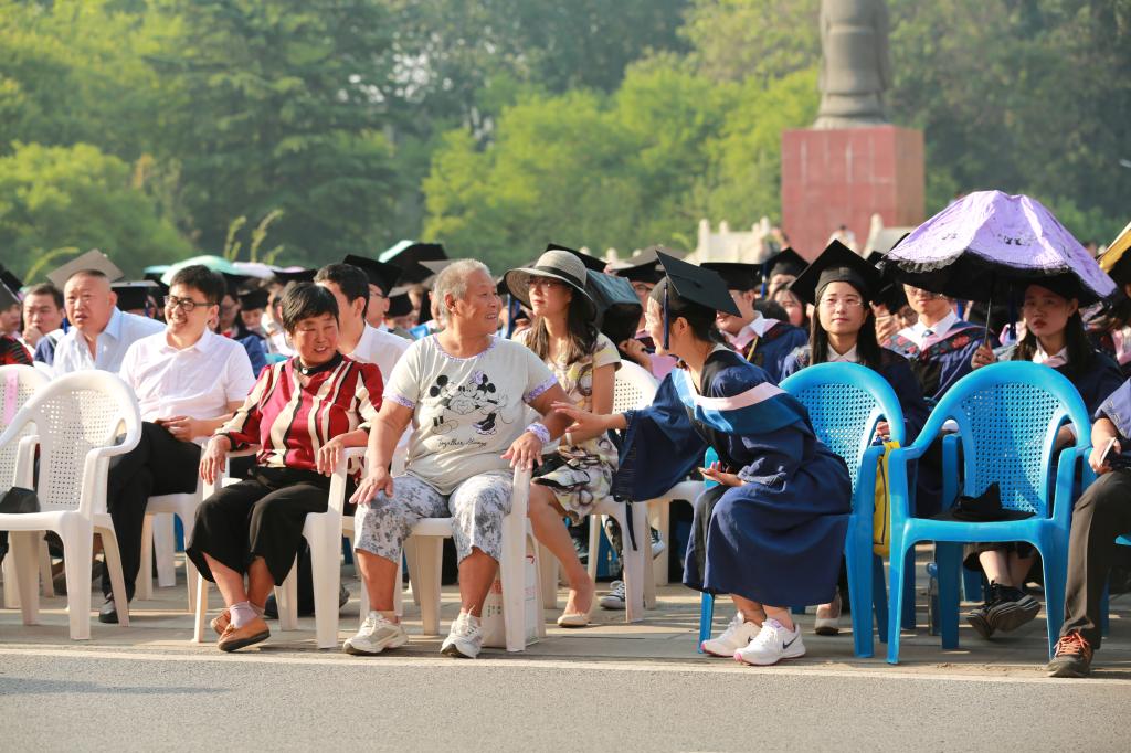 在2018年毕业典礼暨学位授予仪式上,有50余位特殊的嘉宾,他们是毕业生的父母和亲属。他们从全国各地赶到典礼现场,即使满头银发也如孩童般欢呼雀跃,共同庆祝孩子们人生中的重要时刻,亲眼见证他们在曲园这片土地上,从一名懵懂少年成长为朝气蓬勃、英姿勃发的优秀青年。