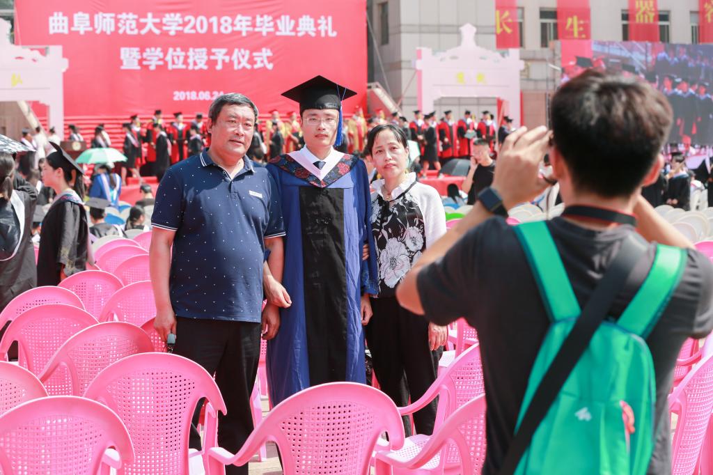 文学院毕业生曲金珠的妈妈说:“从‘就道’与‘弘道’门下走过,多少本书里都渗透着老师们的谆谆教诲、孩子们勤奋的汗水。今天,在孩子带着老师的嘱托、朋友的信任远行之际,衷心祝福曲师大风采永丽,在追求卓越的道路上行得更稳、走得更远。”