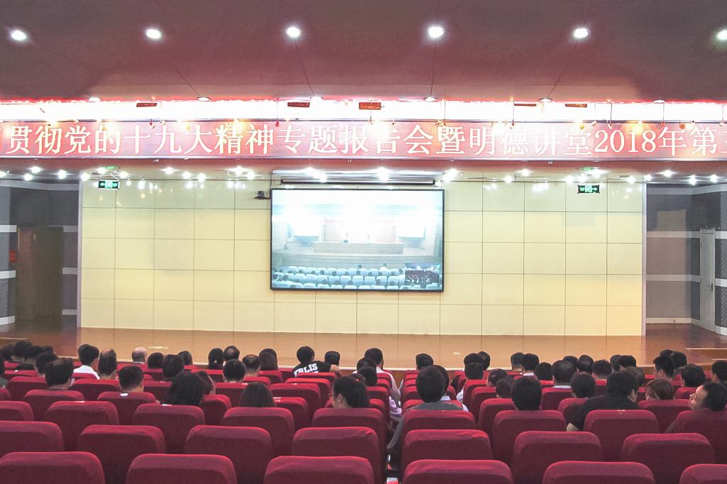 5月18日下午,第十一届山东省政协常委、港澳台侨和外事委员会副主任、山东省智能制造联盟专家委员会副主任委员、原山东省驻上海办事处主任李斌做客我校明德讲堂,作了题为“新旧动能转换的支点——互联网经济与工业4.0”的专题报告。学校领导戚万学、扈庆学、夏云杰,全校科级以上干部、党支部书记、全体辅导员参加报告会。报告会由副校长夏云杰主持。