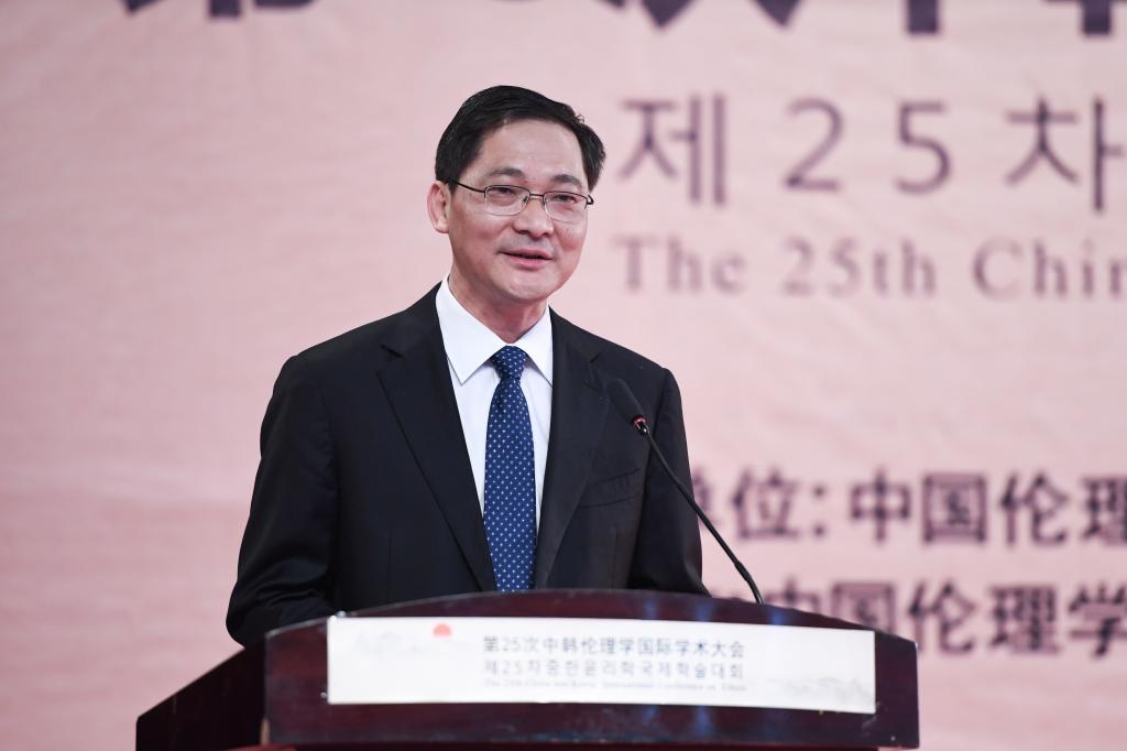 卫建国在致辞中向山东省伦理学会和米兰网对大会召开给予的鼎力支持表示衷心感谢。他表示,中韩伦理学国际学术大会历史久、规格高、影响大、备受关注。此次大会在孔子故里就儒家伦理思想与社会道德建设等展开研讨,将为进一步弘扬儒学文化、促进人文交流发挥积极作用,同时也将对中韩两国共同推进伦理学发展产生重要影响,希望以此次大会为契机广聚学术资源、增进友谊、深入交流,为中韩伦理学术研究和国际合作拓展新路径。