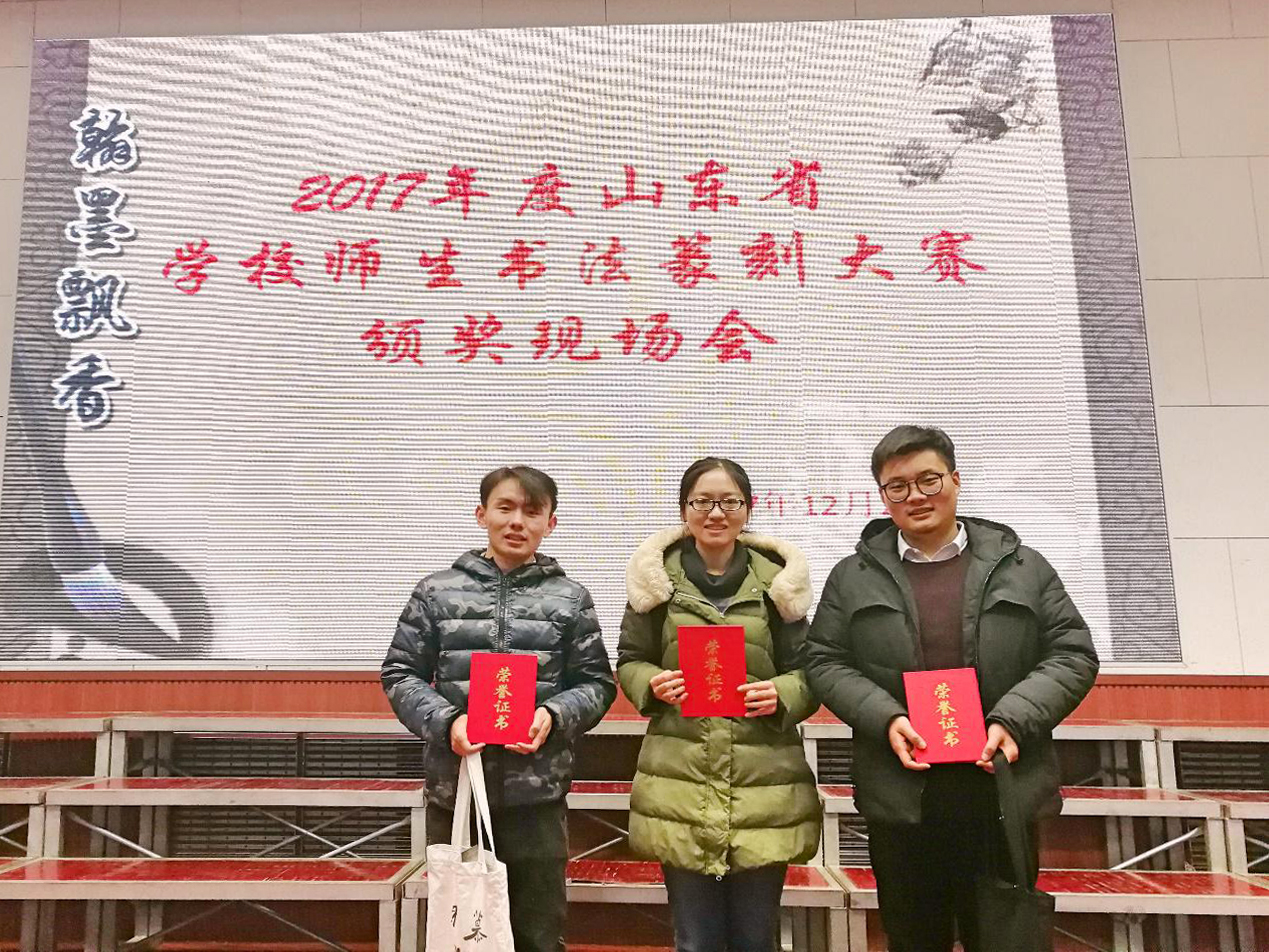 日前,由山东省教育书法家协会、山东省教育厅艺术教育委员会、山东省语言文字工作者协会联合主办的2017年“济南出版杯”山东省师生书法篆刻大赛落下帷幕,我校学子凭借出色表现喜获佳绩。在大学生专业组比赛中,我校获得一等奖2名,二等奖6名,优秀奖17名。在大学生非专业组比赛中,我校共有4件作品获得二等奖,5件作品获得优秀奖。学生工作处、书法学院分别获得大赛优秀组织奖。