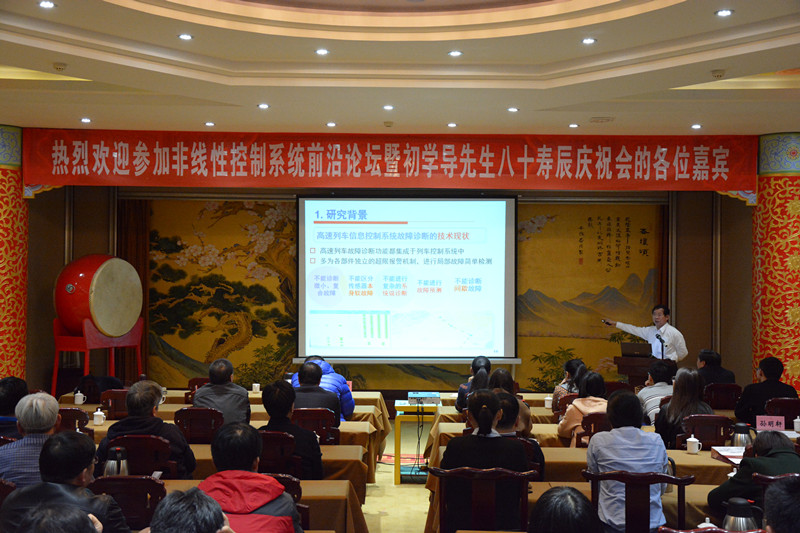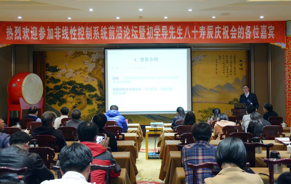 在学术报告阶段,长江学者、国家杰青、山东科技大学副校长周东华教授,长江学者、山东大学控制科学与工程学院院长张承慧教授,初老师的学生长江学者、国家杰青、南京理工大学自动化学院院长徐胜元教授,浙江工业大学博士生导师孙铭轩教授,烟台大学吴昭景教授,鲁东大学杨洪勇教授、李武全教授等作了专题学术报告。与会专家学者围绕新能源多能互补冷热电联动系统设计与优化、大数据驱动的高速列车信息控制系统故障诊断、时滞系统稳定性、时变系统迭代学习、随机拉格朗日系统跟踪控制、多自主体协同控制等国际前沿问题进行了广泛深入的交流。
