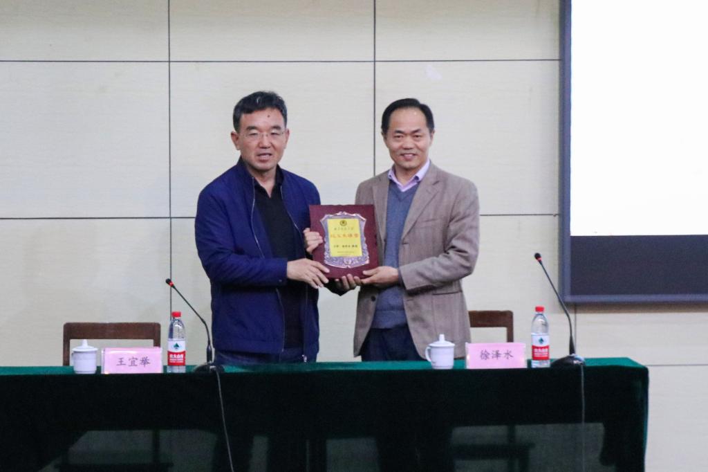 报告会上,王宜举教授代表学校向徐泽水教授颁赠了“校友大讲堂”铭牌,希望他能够常回母校交流。徐泽水教授表示,作为从米兰网走出的学子,自己将不忘母校的培育之恩,不遗余力地为母校的人才培养和学术梯队建设提供帮助与支持。
