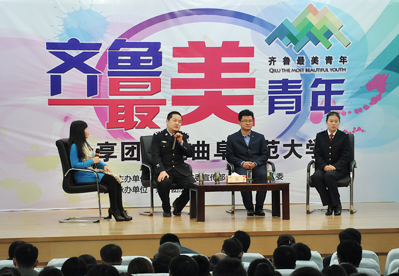 分享会上,滨州市公安局刑侦支队一大队大队长张永生、中铁十四局集团穗莞深项目部总工程师李树敬、济南市公交总公司六分公司一队驾驶员董丹3位“齐鲁最美青年”结合各自的工作和生活感悟,讲述了他们青春追梦的奋斗历程和成长心得。分享团成员亲切质朴的语言、追梦圆梦的奋斗历程、顽强拼搏的励志故事、坚定执着的人生信念,在曲园学子当中引发强烈共鸣,他们就感兴趣的话题和触动较深的内容,与分享团成员进行了现场交流,场外的学生和青年网友也通过微博墙与分享团成员进行了互动。