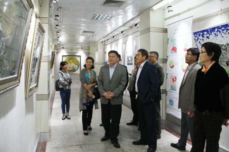 10月17日上午,党委书记荆兆勋、副校长康淑敏参观了美术学院四十周年院庆教师作品汇报展。学校领导在参观中不时与教师们进行交流,对一幅幅凝结着作者们心血和智慧的作品给予了充分的肯定,并希望美术学院教师在专业领域和艺术道路上不断创新,创作出高水平的作品。