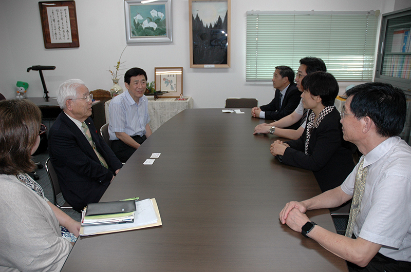 在山口县立大学,理事长江里健辅热情接待了康淑敏一行,回顾了两校友好合作的历史和取得的成绩。随后,代表团与山口县立大学副校长岩野雅子、国际处、研究生院、文化学部等部门负责人进行了座谈,双方就在现有合作基础上扩大学生交流规模、互派访问教师交换了意见,并探讨了进行跨学科科研合作、借助我校英语专业的优势接纳山口县立大学学生来我校进行英语短期学习和体验的可能性。在参观校园时,山口县立大学新建校区实验大楼的合理布局和对空间的充分利用为大家留下了深刻印象。