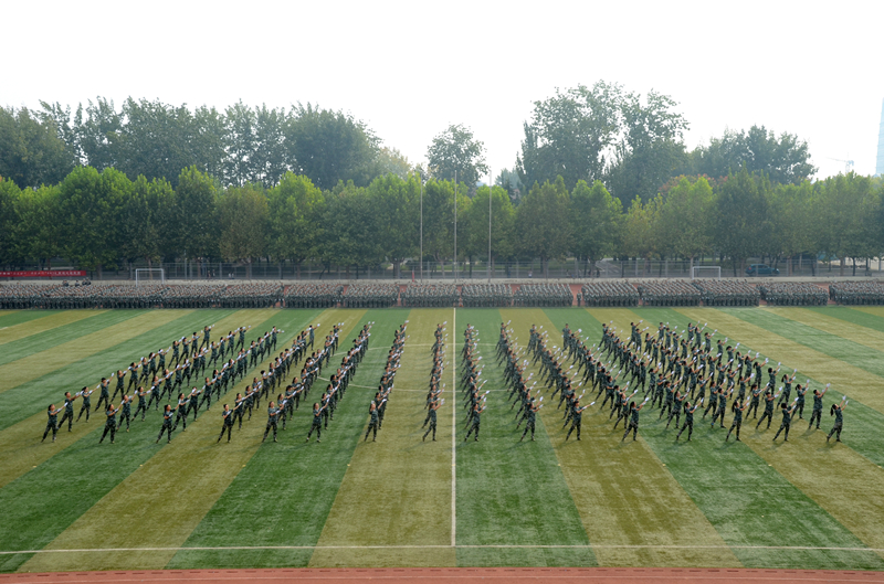 在接下来的军训成果汇报表演中,男生队列动作刚健,女生队列步履铿锵,军体拳方队势如奔雷,擒敌拳方队锐不可当,心理健康操方队潇洒优美,定向越野连队健步如飞,内务方队干净利落,战地救护展示身手不凡。一串串训练有素的动作充分展现了同学们扎实的军训成果。