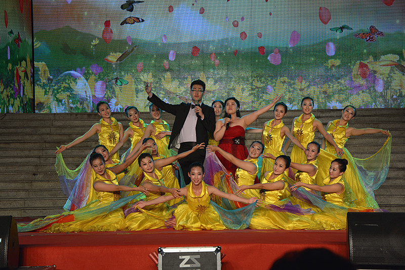 晚会在欢快的《节日欢歌》中拉开帷幕,流行歌曲《Uptown funk》激情地说唱、炫酷的伴舞迅速将现场气氛点燃,此时礼花燃起,更是增添了效果。歌曲《一生有你》,引起了广大毕业生的共鸣,观众跟随音乐一起歌唱,台上台下融为一体。舞蹈《女儿花》、《花球啦啦操》均由十几个姑娘表演,《女儿花》的姑娘们口衔花儿,羞涩可爱,舞姿曼妙;啦啦操姑娘们手持花球,欢快活泼,激情四射:尽管风格不同,但她们都是千万曲园姑娘的代表,都给人带来美的享受。由杨超老师手风琴伴奏,王翼亭老师、王曙光老师演唱的二重唱《游击队之歌》、《阿拉木汗》,节奏欢快、声音动听、旋律耳熟能详,似给晚会带来了一缕清风,引来阵阵掌声。音乐情景剧《两棵树》,不仅生动活泼、表演到位,而且给观众们在欢声笑语中带来反思,表演结束时大家赞不绝口。歌曲联唱、双人舞《兄弟》、独唱《凤凰花开的路口》,将晚会推向又一个高潮,观众随着节奏晃动手机电筒,晚会现场成为灯的海洋。朗诵《告别母校,再见曲园》,文稿由我校毕业生原创,寄托了广大学子对母校的深深眷恋,四位同学饱含深情地诵读,将大学四年的美好回忆和对未来的迷茫、担忧、期望,五味杂陈的心情娓娓道来,字字情真意切,观众不禁潸然泪下。独唱《老师,我总是想起你》和合唱《祝福》,分别表达了学子对老师的不舍和老师对学生的美好希冀,同学们上台为张瑞甫、张文娟、包颖三位教师代表献花,师生情浓,感人至深。最后,晚会在大学生艺术团的大合唱《共筑中国梦》中圆满结束。