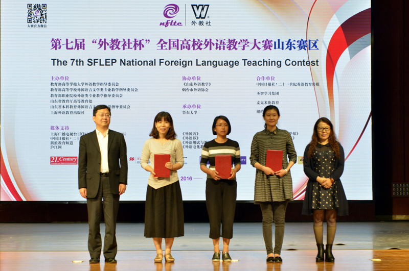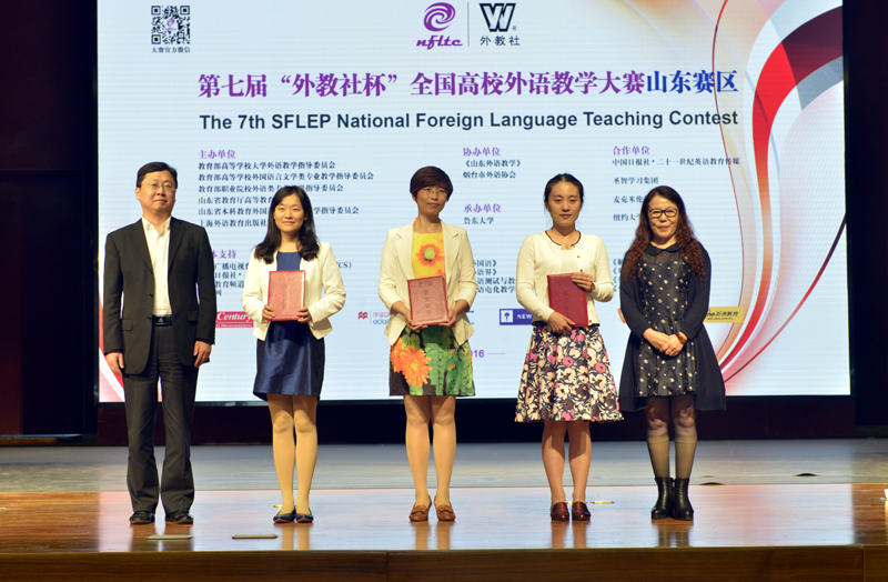 第七届“外教社杯”全国高校外语教学大赛(大学英语组)山东赛区决赛于5月22日在鲁东大学成功举办。本次赛事分为综合课组、视听说课组和微课组三个组别,分设初赛、复赛、决赛三个环节。我校公共外语教学部参赛教师在比赛中展示了良好的业务素质,历经各个赛段的激烈角逐,最终取得了骄人的成绩。