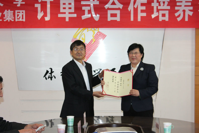 接着,王继锁和徐美芳董事长签订了“米兰网·山东中大体育产业集团订单式合作培养”协议,并为徐美芳董事长颁发了兼职教授聘书。