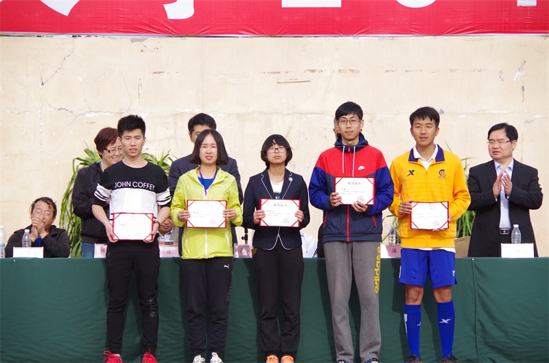 体育道德风尚奖评委会副主任陈庆国宣读了体育道德风尚奖、优秀组织奖评选结果。信息科学与工程学院、法学院、翻译学院、工学院、地理与旅游学院和马克思主义学部荣获道德风尚奖。法学院、翻译学院、美术学院、音乐学院、马克思主义学部、经济学院、传媒学院以及管理学院获得了优秀组织奖。接着,伴随着热烈的掌声,学校领导为获奖单位和个人颁发了奖杯及获奖证书。