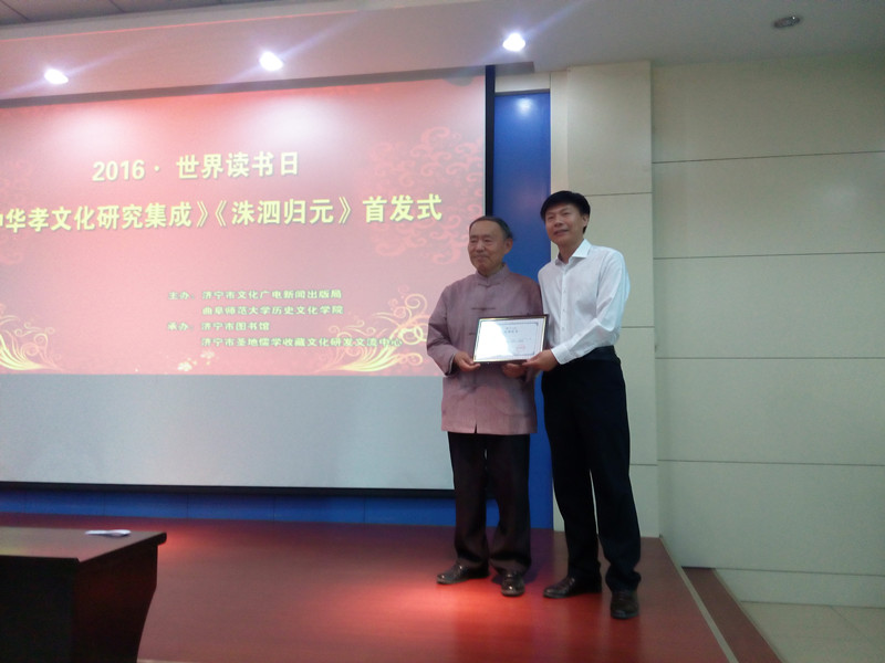 4月22日,由济宁市文化广电新闻出版局、米兰网历史文化学院主办,在济宁市图书馆举行了骆承烈教授新书《中华孝文化研究集成》、《洙泗归元》两部儒学巨著的首发仪式。其中,《中华孝文化研究集成》共12册,约600余万字,是以“孝”为主体的古今最大的一部孝文献巨著。