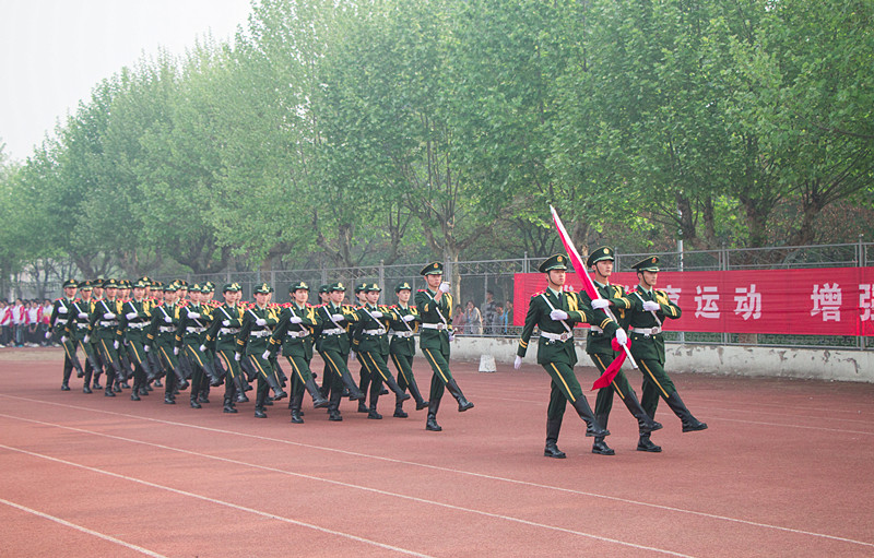 伴随着运动员进行曲,国旗护卫队、红旗方队、裁判员方队、运动员方队、各学院代表队衣着统一,精神抖擞,依次经过主席台。庄严的国歌响彻田径场上空,鲜艳的五星红旗在运动场的东方冉冉升起。
