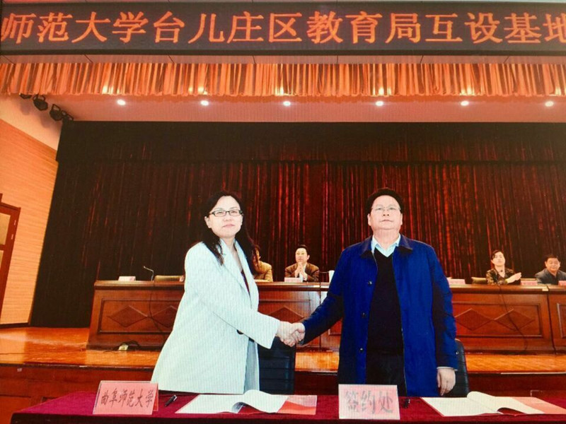 3月16日下午,我校与台儿庄区教育局互设基地揭牌仪式在枣庄二中举行,学校党委常委、副校长扈庆学,中共台儿庄区委书记、区人大常委会主任王广金出席揭牌仪式并为基地揭牌。台儿庄区中小学校长、教研员、教师代表和曲师大实习学生300余人参加揭牌仪式。仪式由台儿庄区委常委、副区长李晓红主持。