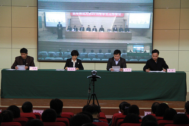 3月16日下午,我校召开2016年学生工作会议,对2015年的学生工作进行总结,表彰了部分先进个人和单位,并部署2016年学生工作。校长戚万学、副校长康淑敏,学校办公室、校区管理办公室、组织部、学生工作处、招生就业处、后勤管理处、团委、校区学生工作办公室等单位负责人出席大会。会议由团委书记屈跃宽主持。