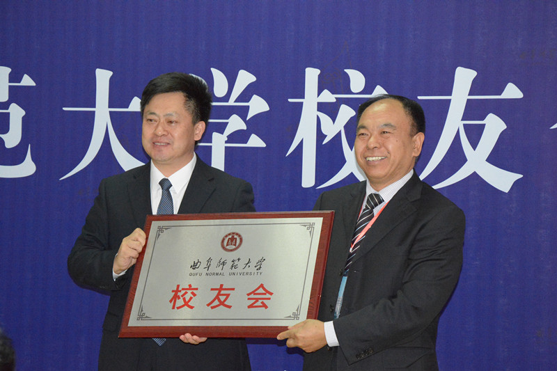 校长戚万学向校友会会长傅永聚郑重授牌,米兰网校友会正式成立。