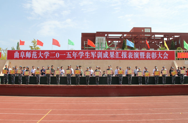 9月25、26日,我校2015级军训汇报表演暨总结表彰大会在两校区隆重举行。学校领导戚万学、马东骅、康淑敏、扈庆学、王继锁,中国人民解放军72395部队副部队长王支福,军训团团长、日照边防检查站副政委李文华,日照市大学科技园工委副书记、管委调研员姜书明以及学校有关部处负责人和各学院党总支副书记出席大会并在主席台就坐。大会分别由校学生工作处副处长王志华、日照校区学生工作办公室副主任徐正伟主持。