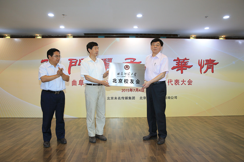 荆兆勋向北京校友会授牌,赠送《先师孔子行教像》,并作重要讲话。荆兆勋指出,多年来,广大北京校友秉承母校“学而不厌,诲人不倦”的校训,拼搏进取,努力工作,取得了骄人的业绩,成为各个领域的骨干力量和优秀人才,为首都建设和国家发展贡献了宝贵力量,为母校赢得了良好的社会声誉。北京校友会自成立以来,为联络和服务在京校友,支持母校发展,付出了辛勤的劳动。在本次校友会换届工作中,筹备委员会的各位校友都付出了心血和汗水。