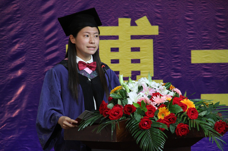 化学与化工学院朱万诚老师、翻译学院夏云老师分别代表研究生导师,对研究生表达了祝贺和希望,希望他们不负母校和老师培养,把国家、社会和家庭的责任但在肩上,将“仁义礼智信”作为做人、做事、做学问的准则。文学院李励、政治与公共管理学院的张晓娜也代表研究生表达了对母校、老师谢意,表示不辜负母校和老师们的期望,将自己的人生和事业与国家和社会的需要有机结合,担当时代赋予的使命。