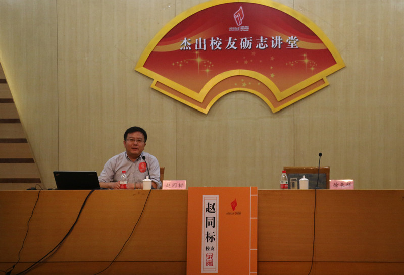 赵同标校友风趣幽默地作了自我介绍,并表达了对母校的感恩之情。演讲中,他联系自己的经历,从人要有梦想、要行动、要坚持、要合作四个方面,结合俞敏洪、乔布斯等名人的成功故事,讲述筑梦、逐梦和圆梦的道理,勉励同学们树立远见视野,矢志奋斗,成就梦想,他说“世界上最快乐的事情就是为理想而奋斗”。他还希望在场的师弟师妹们在实现梦想的路上能够学会坚强,正确面对遇到的困难和挫折学会从挫折中找到新的方向。