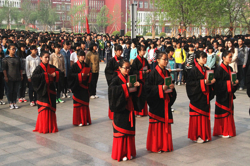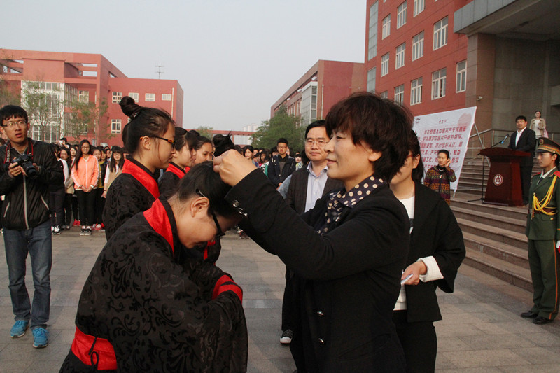 4月30日,为把传统文化渗透进思想政治教育,引导学生树立传统文化认同、增强民族文化自信,进一步强化社会主义核心价值观教育。由日照校区学生工作办公室主办的纪念五四运动96周年暨“迈入青春门•走好成人路”五四成人礼活动举行。副校长康淑敏出席活动,四千余名师生参加了仪式。 在庄严的升国旗仪式中,四千余名青年团员和团干部重温入团誓词,发出铮铮青春誓言。8名18岁学生身着汉服肃立,共同迎来了属于自己的“成人礼”。与会领导为其插簪,并赠予成人纪念证章。 康淑敏向广大青年学子寄语。她回顾了五四运动的历史,对加强思想政治教育和传统文化教育给予了充分肯定,她代表学校对团员青年提出了三点希望:一是希望同学们树立远大理想,做有志青年;二是希望同学们矢志拼搏奋斗,做有才青年;三是希望同学们自觉担当使命,做有为青年。 “这次活动让我感受到传统文化的力量,心里多了更多认同,特别是作为成年人应有的责任担当。”政治与公共管理学院2014级张同学说。 (文:曲媛媛 图:李艳梅 来源:学生工作办公室 编辑:宣传部新闻中心 责编:孙琪)